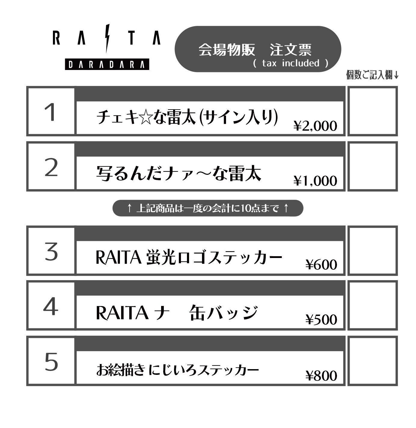 ▼「RAITA DARADARA」会場物販
