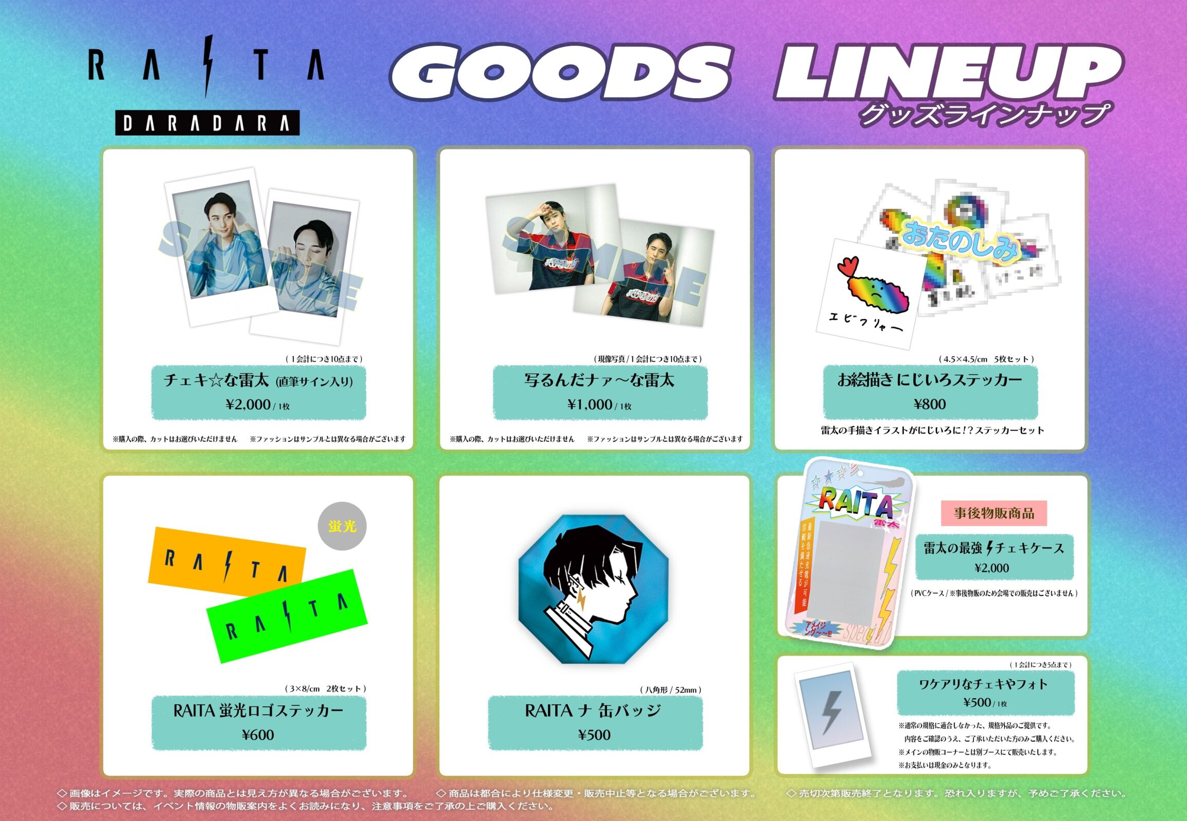 下記の時間に「RAITA DARADARA」のオフィシャルグッズをご購入いただけます。